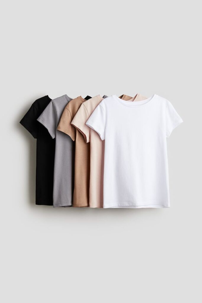 Invest in a few high-quality basic t-shirts in neutral colors like white, black, and grey. These are perfect for layering or wearing on their own. They can be paired with jeans for a casual look or dressed up with a statement necklace and blazer.
